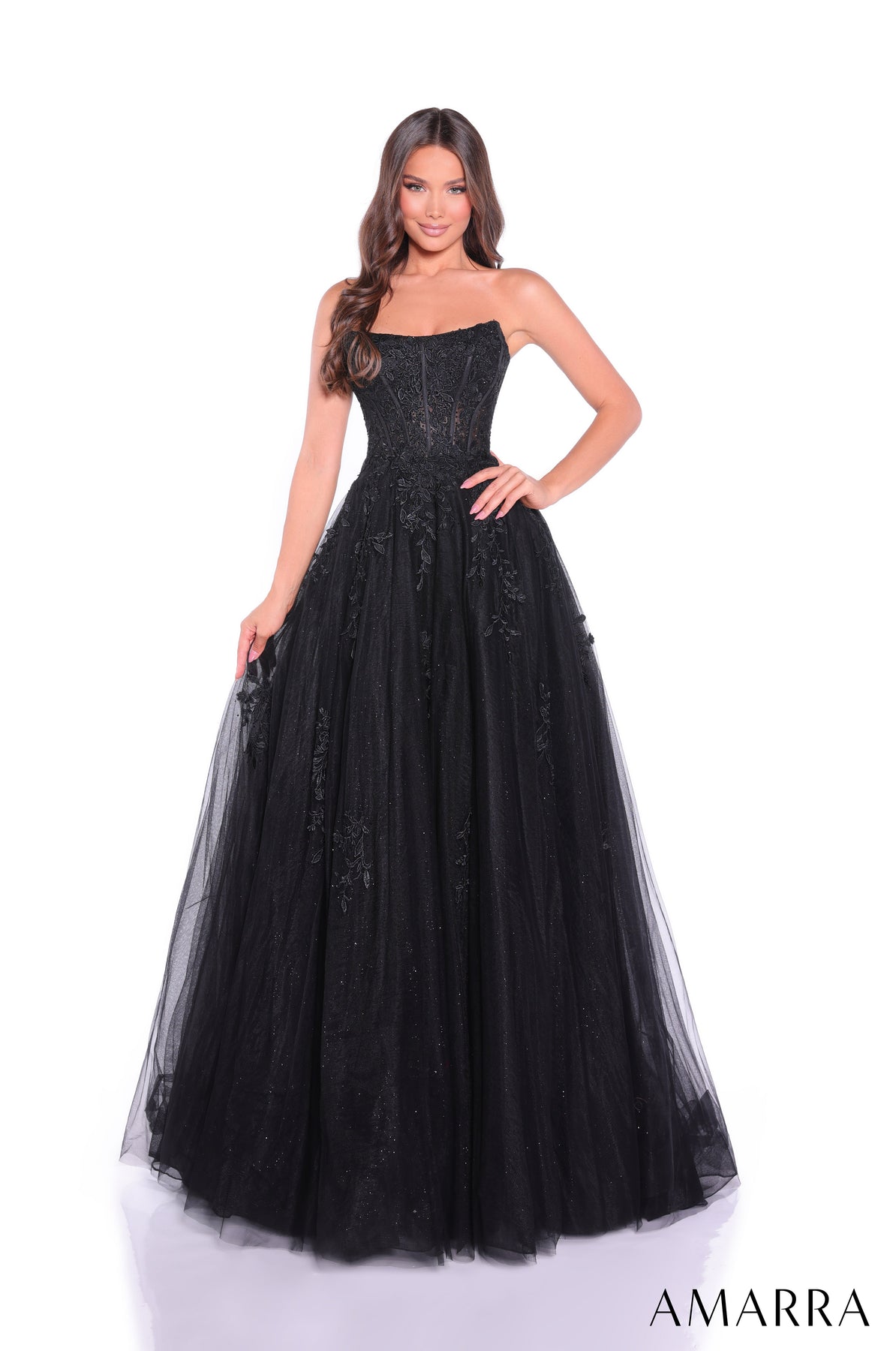 Step into fairytale glamour with this strapless ball gown featuring floral lace embroidery. The structured bodice adds definition, while the tulle skirt brings drama and grace. A perfect pick for prom or quinceañera.