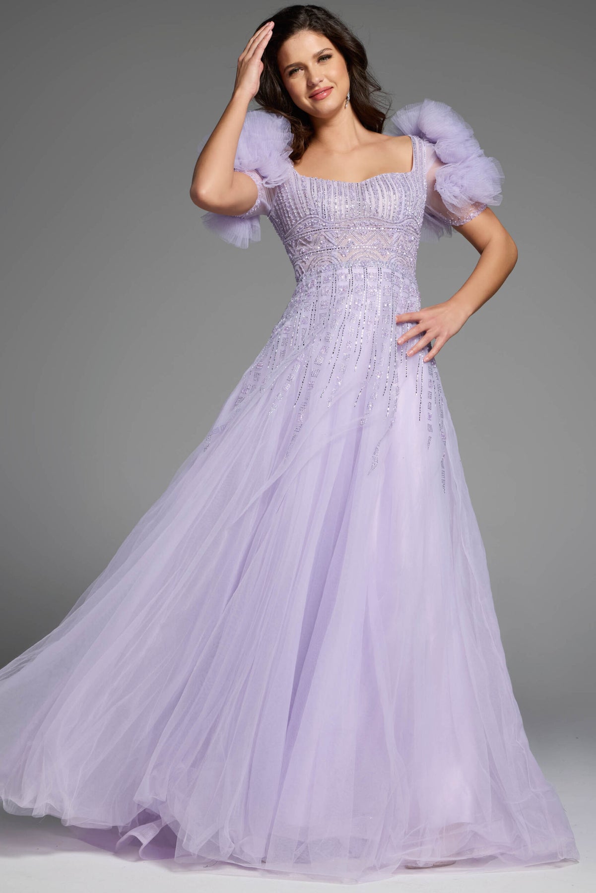 Step into the spotlight with the Jovani 61026 lilac ballgown, designed to bring out your playful charm. This dreamy dress features enchanting puffy sleeves and delicate beadwork that sparkles with every move. Perfect for making unforgettable memories, it combines elegance with a fun, flirty vibe that’ll leave everyone mesmerized.