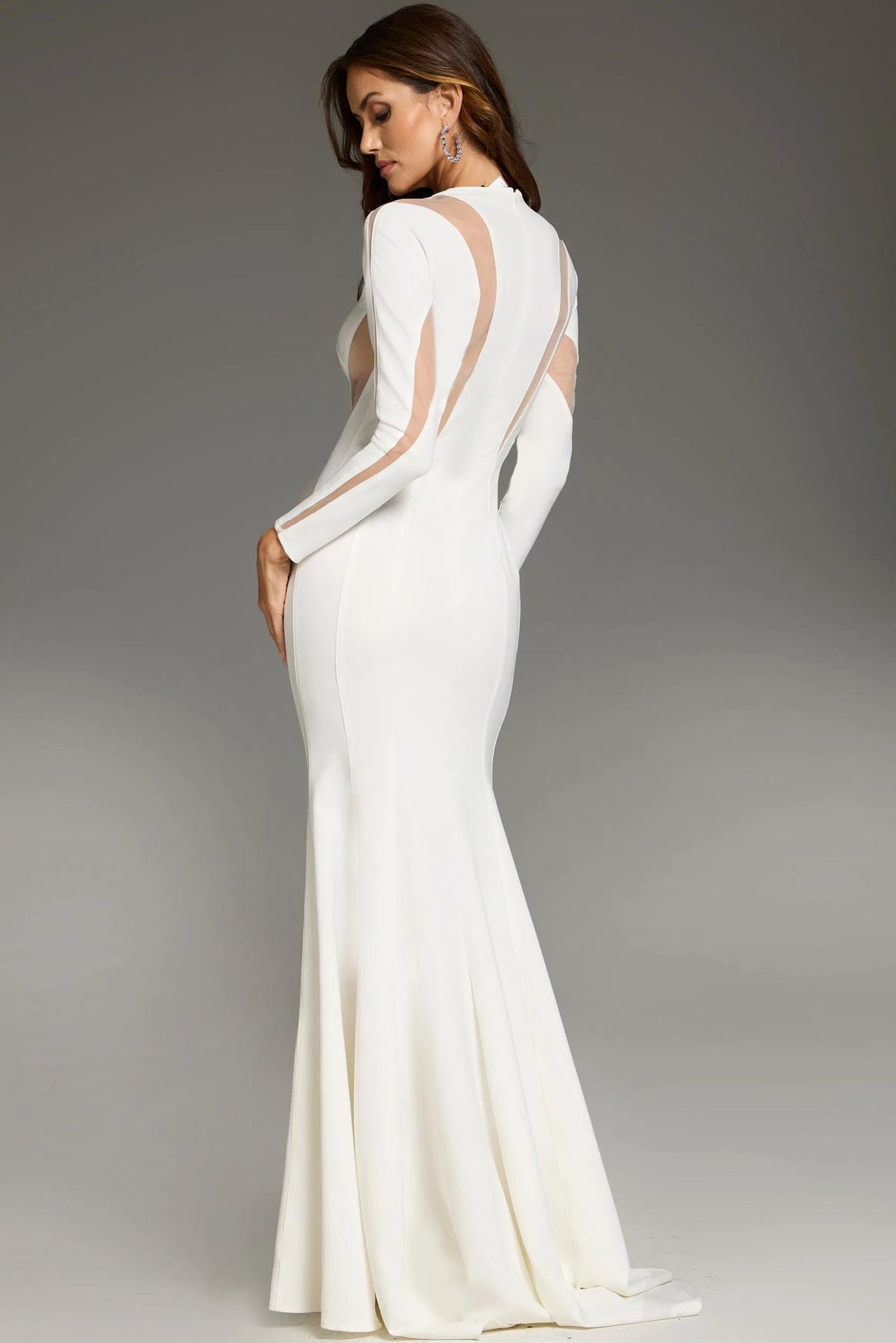 Elevate your formal attire with the Jovani 37671 dress. Its fitted silhouette, high neckline, and sheer panel accents exude timeless elegance. Perfect for any occasion, its graceful flared hem and long sleeves add a chic and modest touch. Meticulously crafted with attention to detail, this dress is sure to make a memorable entrance.