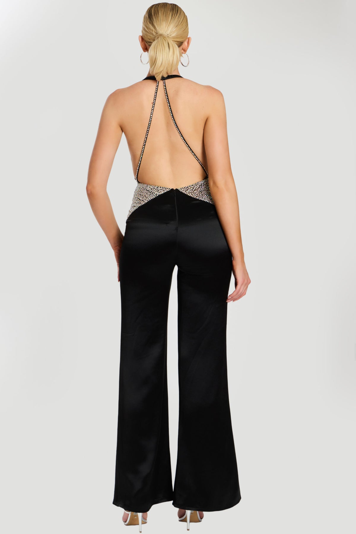 The Jovani 47720 jumpsuit features an embellished halter neckline that adds a touch of sophistication and glamour. Its open back design offers a striking, elegant silhouette perfect for formal events or special occasions. Crafted to combine style and comfort, this jumpsuit ensures you stand out with refined detailing and a flattering fit. Ideal for those seeking a modern yet timeless look.