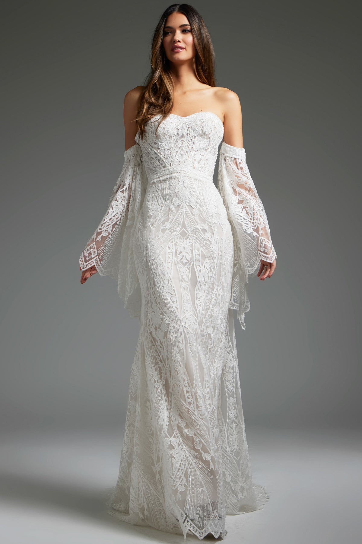 Make your wedding day unforgettable in the Jovani JB39162, a stunning testament to timeless bridal elegance. This exquisite lace gown features a perfectly fitted silhouette enhanced by a structured corset that celebrates your natural curves with grace. The romantic sweetheart neckline and long sleeves create an air of sophisticated charm, while the dramatic flowing train makes a breathtaking statement as you walk down the aisle. The discreet back zipper ensures a flawless fit that moves with you effortlessly, giving you the confidence to embrace every precious moment. Crafted with impeccable attention to detail, this dress is designed to make you feel absolutely radiant on your special day a true masterpiece for the bride who demands nothing less than extraordinary.