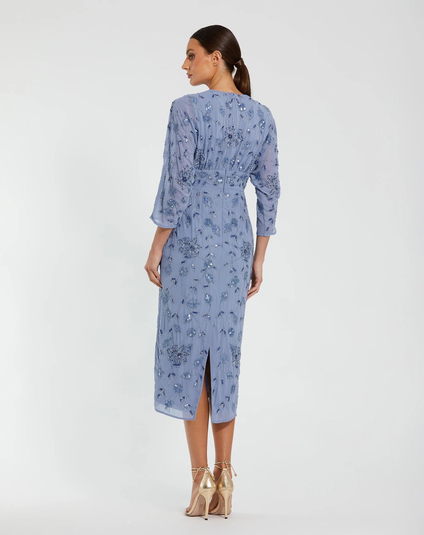 - Hand-beaded floral motif throughout