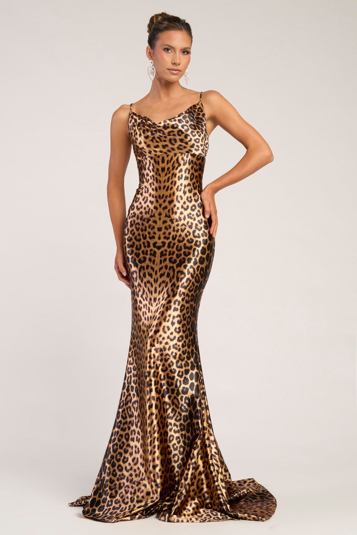 This playful long dress features a bold tiger design that adds a fierce touch to any occasion. With a flattering V-neck and an open back, it effortlessly blends elegance with a hint of daring. Perfect for turning heads, this dress combines comfort and style for a confident, standout look.
