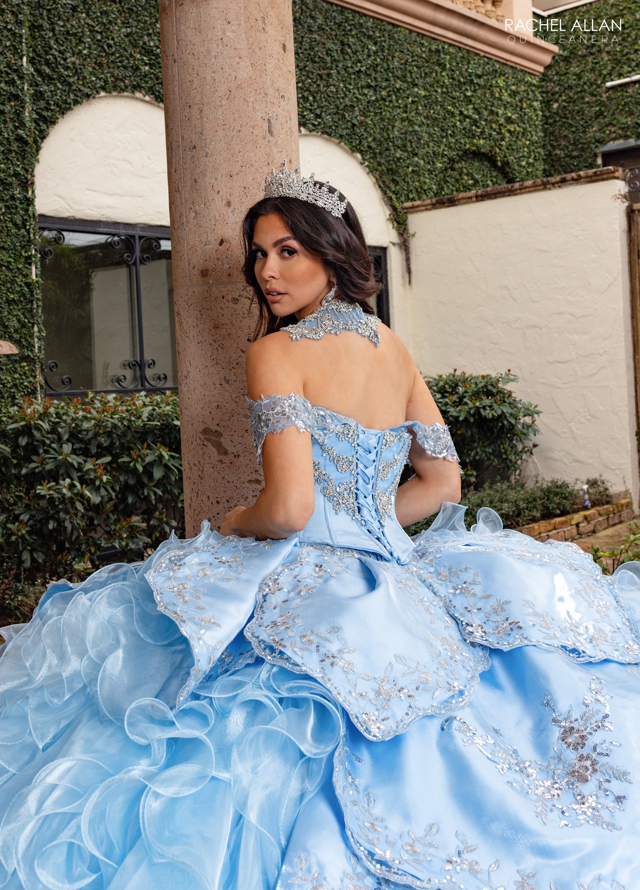 Step into the spotlight with the Rachel Allan RQ6004 Dress, a playful blend of elegance and drama. Available in Blush Rose Gold, Latte Rose Gold, or Cloud Blue Silver, this dress dazzles with crystal satin and organza, sculpted beading, and a tiered ruffle train. The detachable corset bodice offers versatile flair, while the matching necklace completes your royal soirée or unforgettable quinceañera look.