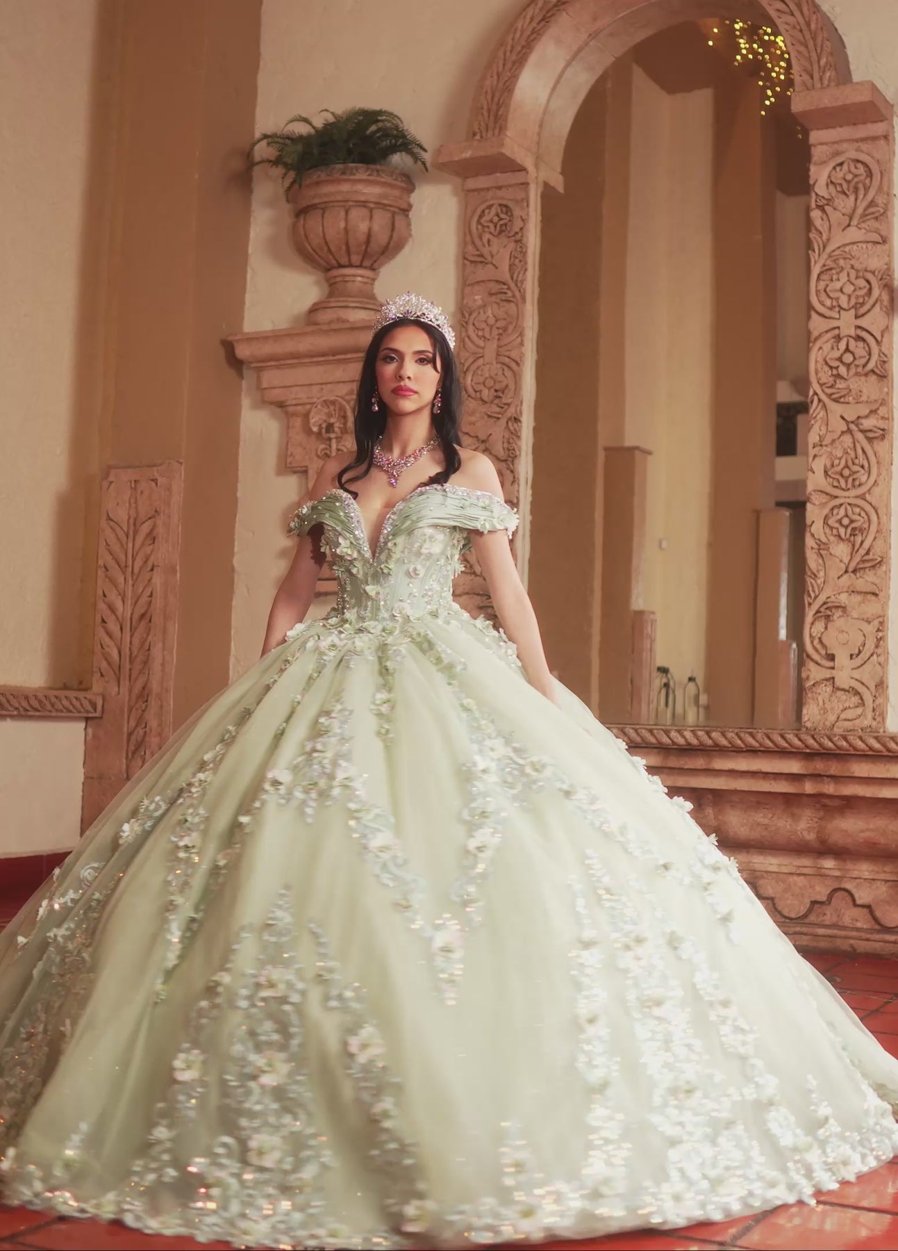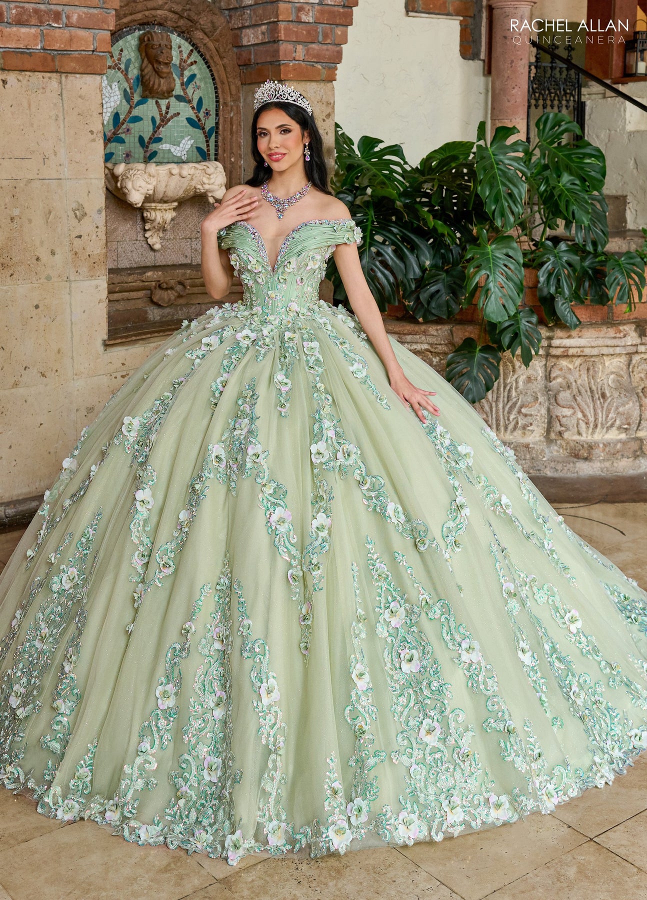 Feel like royalty in the Rachel Allan RQ2204 Dress, where magic and feminine grace come alive. This off-the-shoulder gown dazzles with soft floral embellishments and intricate embroidery that spill onto a lavish, full taffeta skirt. Its dramatic, voluminous silhouette is perfect for making unforgettable entrances, turning any special day into a whimsical celebration of elegance and charm.