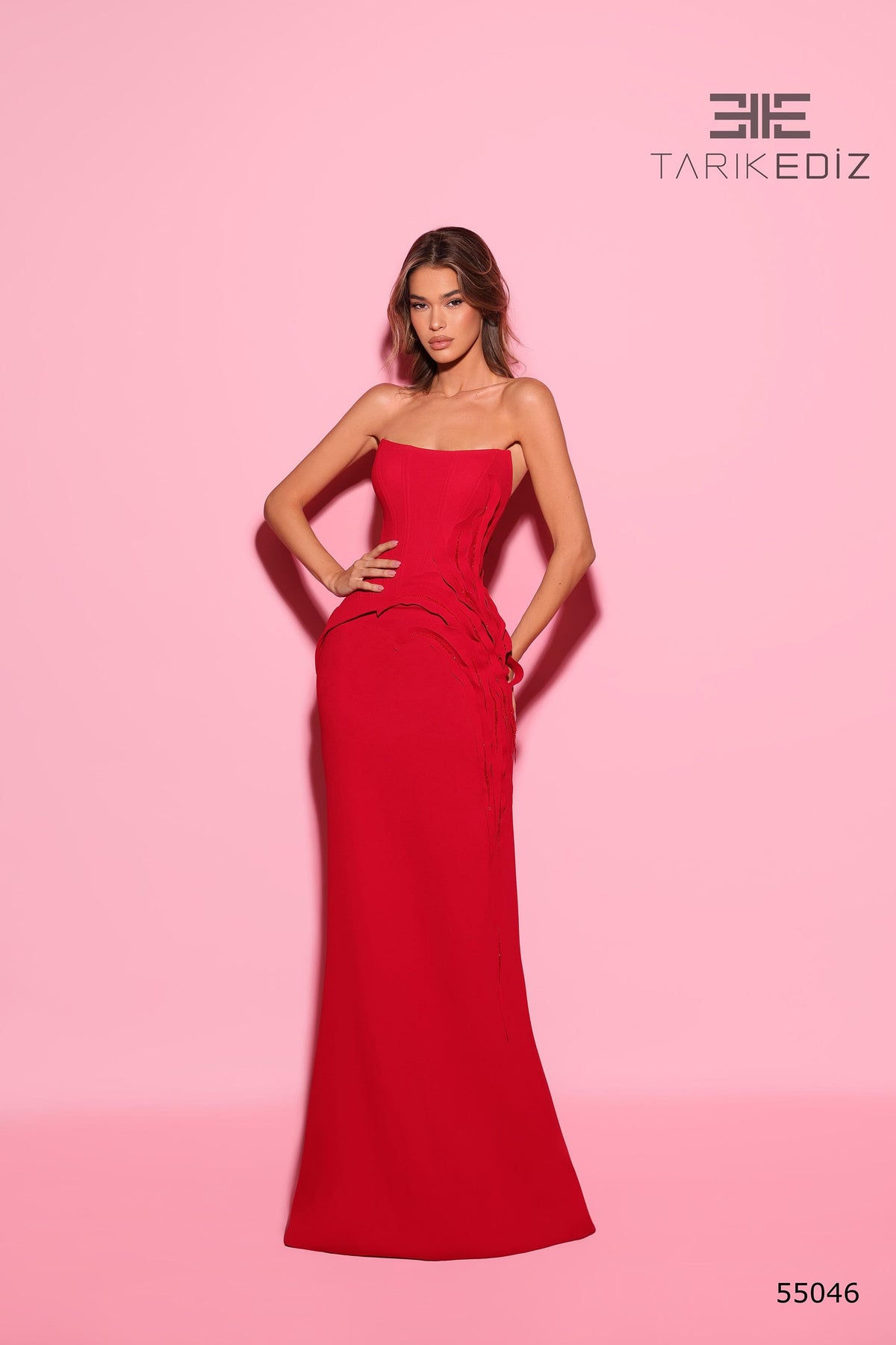 Slip into pure elegance with the Tarik Ediz 55046, a show-stopping gown from the 2026 evening collection that's practically begging to turn heads. This taffeta beauty hugs your curves in all the right ways, featuring a chic strapless neckline and corset detailing that screams sophistication. The sweeping floor-length silhouette glides behind you like a dream, while the seamless back zipper keeps everything perfectly in place. Whether you're attending a gala, wedding, or red-carpet moment, this stunner delivers the confidence and glamour you deserve. Make your grand entrance unforgettable.