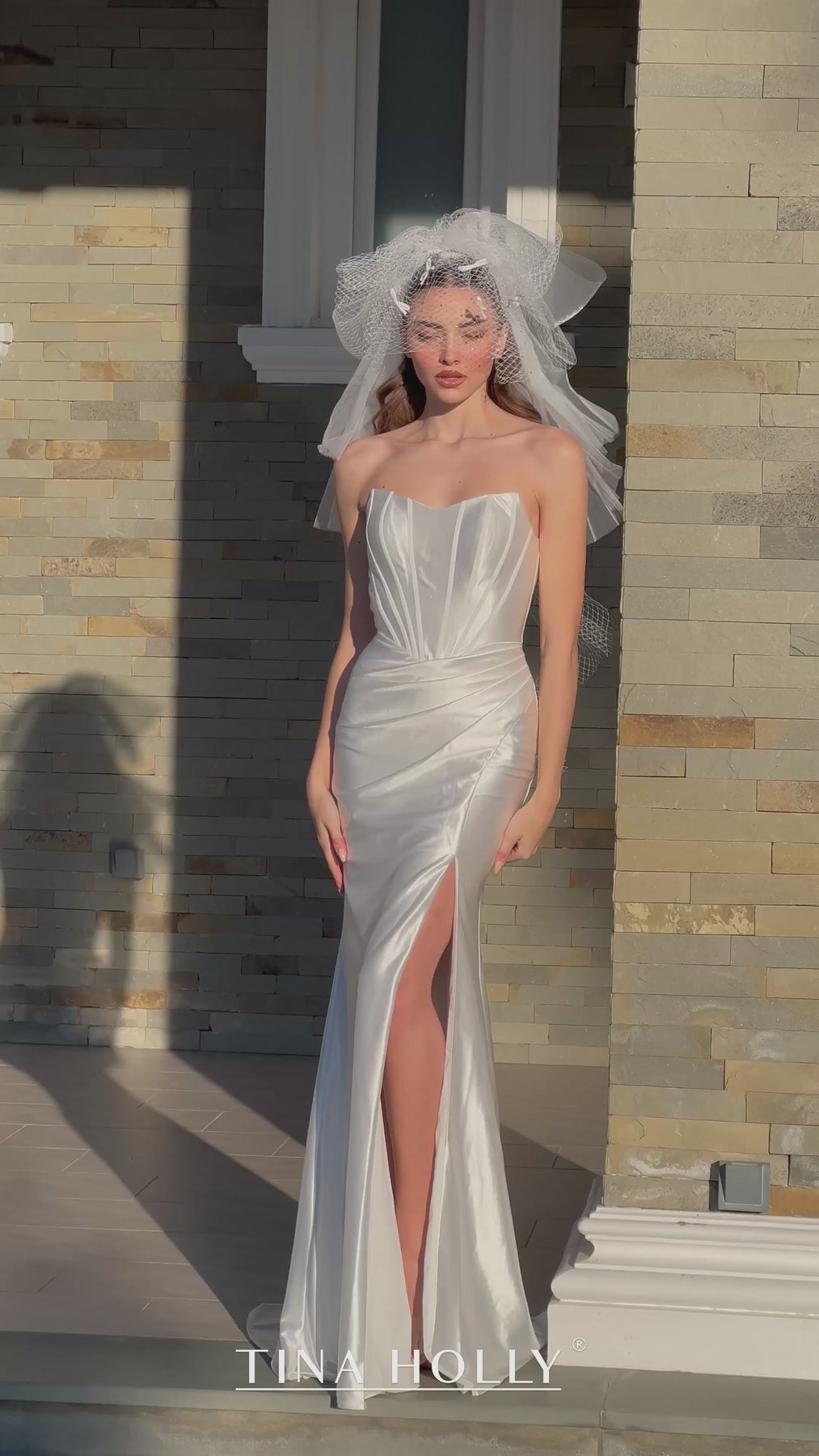 # Tina Holly TK151W Dress Make your wedding day unforgettable in this stunning sweetheart neckline gown. The sleeveless, strapless silhouette offers timeless elegance, while the high leg slit adds a modern, confident touch. Crafted with an invisible corset for seamless support and a flattering fit, this dress hugs your curves beautifully without visible structure. Perfect for the bride who wants to feel both supported and radiant, this long dress combines classic bridal sophistication with contemporary allure. You'll feel absolutely breathtaking as you walk down the aisle.
