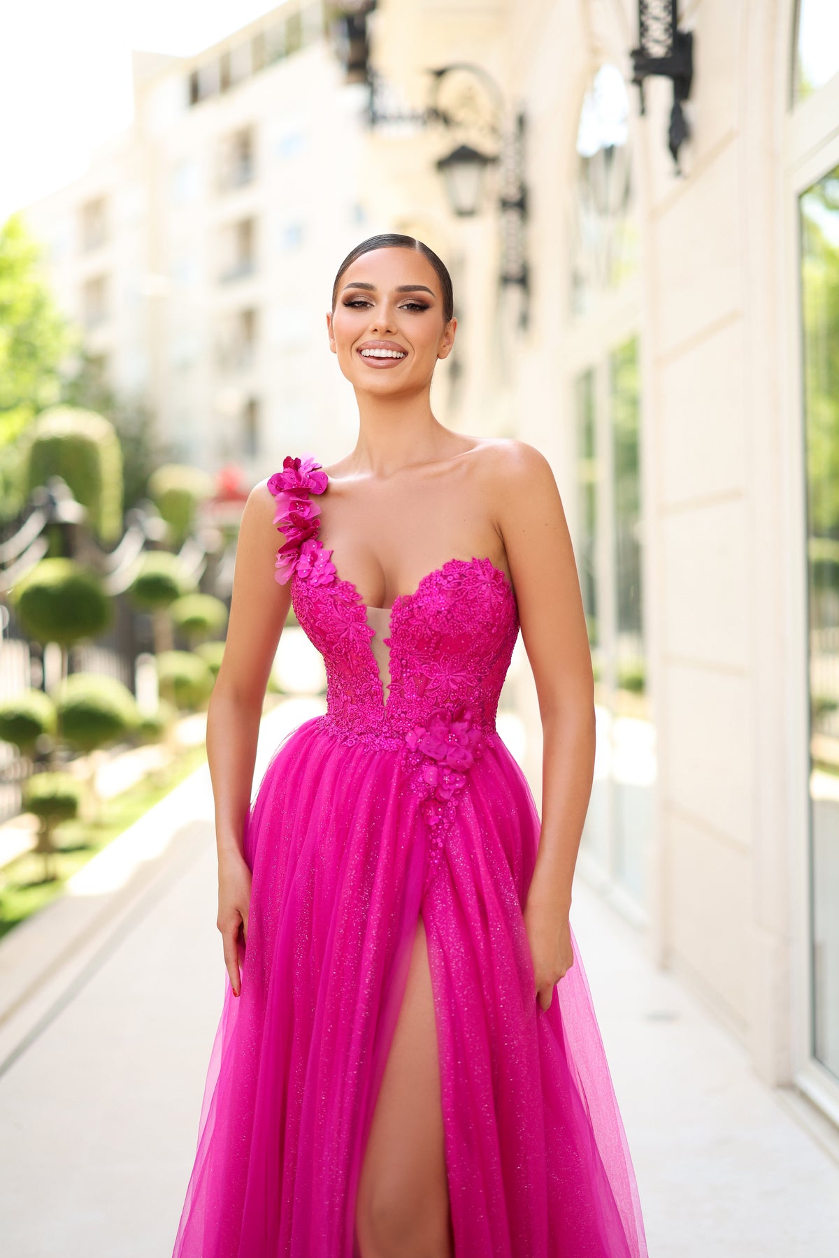 Introducing the Tina Holly TK554 Dress—a stunning statement piece that celebrates your individuality. This elegant long dress features a sophisticated one-shoulder design paired with a flattering V neckline, creating an effortlessly chic silhouette. The sleeveless cut offers freedom of movement while maintaining refined elegance, while the dramatic high leg slit adds a touch of allure and modern flair. Crafted from luxurious tulle fabric, this dress drapes beautifully and catches the light with every step. Perfect for special occasions, evening events, or whenever you want to feel confident and extraordinary, this unique design ensures you'll stand out from the crowd with grace and style.