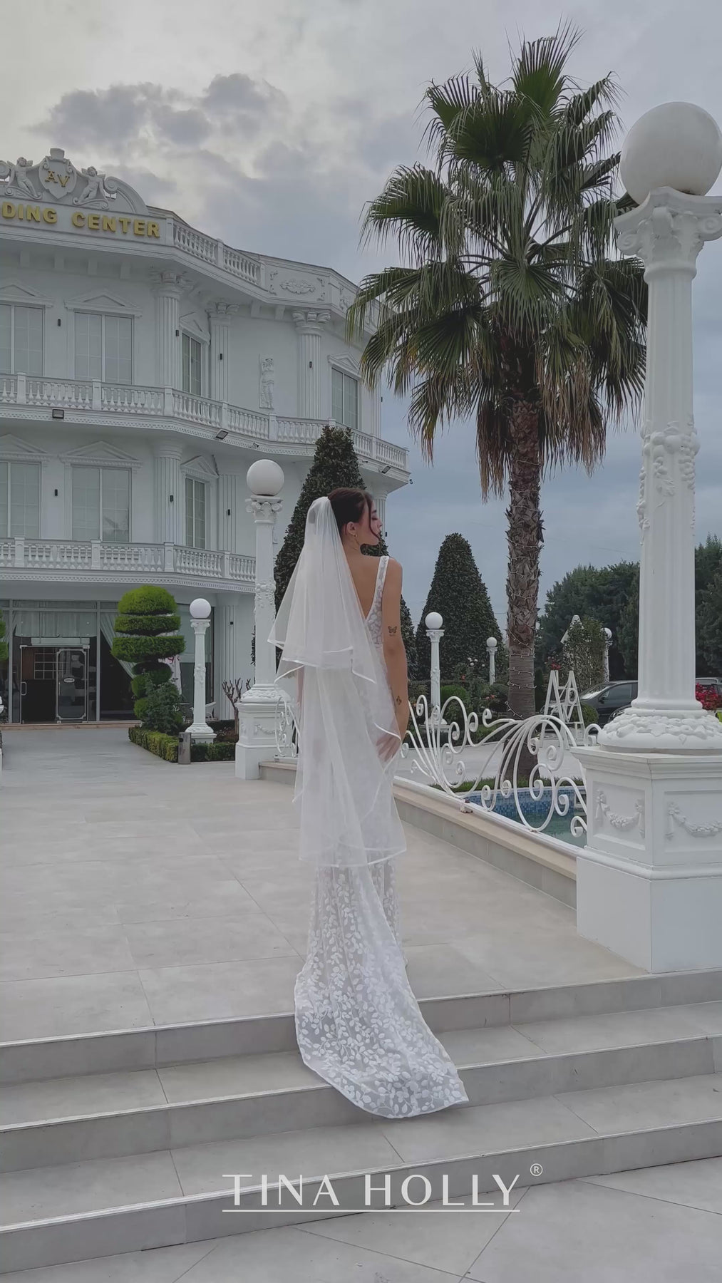 The Tina Holly TW108 is a stunning sleeveless wedding dress designed to make your special day unforgettable. This elegant mermaid gown features delicate straps and a flattering V neckline that frames the face beautifully. The show-stopping open back adds a touch of modern sophistication and romance, perfect for a bride who wants to feel confident and radiant. The fitted mermaid silhouette hugs your curves gracefully before flowing into an elegant train, creating a dramatic and timeless bridal look. Whether you're walking down the aisle or dancing the night away, this dress combines classic bridal elegance with contemporary style, ensuring you feel like the best version of yourself on your wedding day.