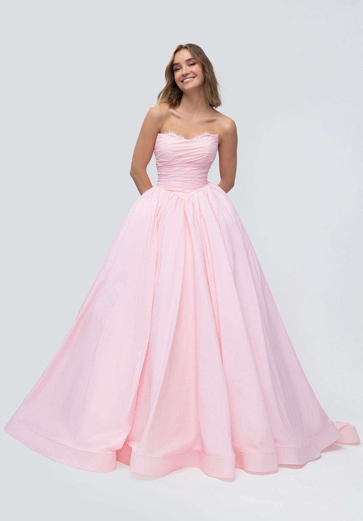 Embrace timeless elegance with the Morilee 49332 Dress, a stunning ball gown that commands attention. Crafted from luxurious taffeta, this strapless beauty features a sweetheart neckline and voluminous skirt that creates a dramatic silhouette perfect for formal occasions. The structured fabric provides exceptional support and movement, allowing you to feel confident and radiant throughout your special event. Whether you're walking down the aisle or attending a gala, this showstopping gown delivers the sophisticated glamour you deserve.